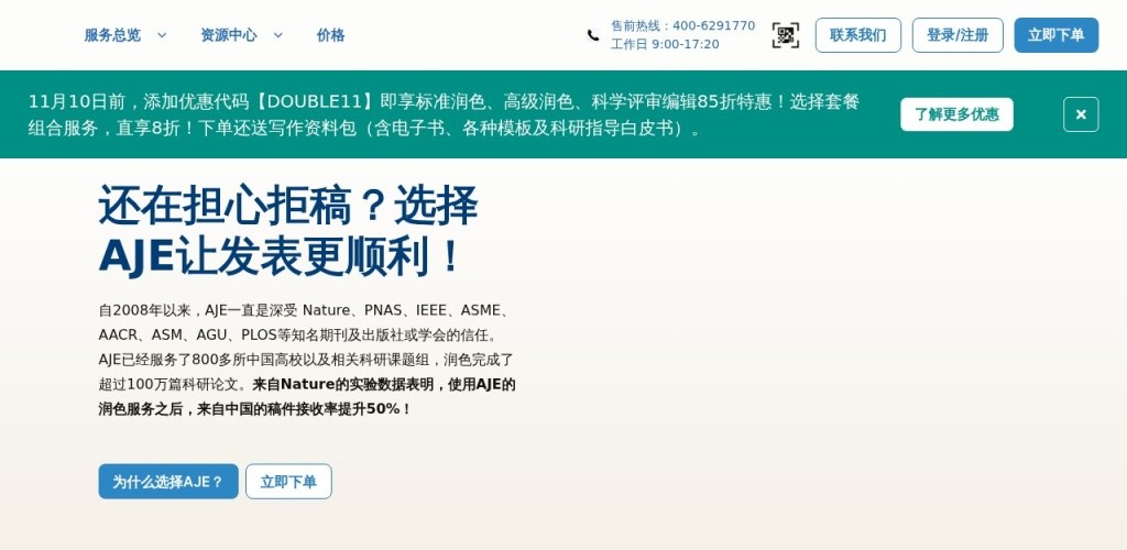 - 与Nature系列期刊合作:作为Nature系列期刊首选的润色机构,AJE备受国际知名出版商信赖。