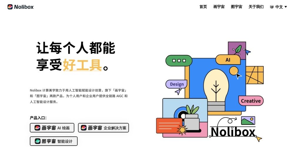 Nolibox 计算美学致力于用人工智能赋能设计创意,旗下「画宇宙」和「图宇宙」两款产品,为个人用户和企业用户提供全链路 AIGC 和人工智能设计服务。