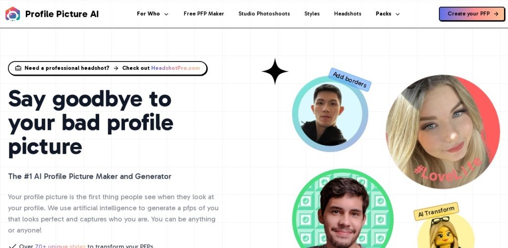 PFP.AI(Profile Picture AI)是一个使用人工智能技术生成专业头像的在线工具。它旨在帮助用户创建高质量、个性化的头像,以用于社交媒体、在线平台和其他个人资料展示。以下是该工具的详细介绍: