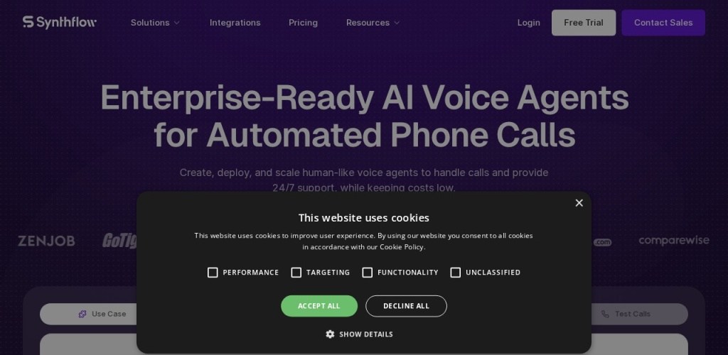 Synthflow AI 是一个可以用 AI 语音代理自动拨打电话的平台,具有以下特点和优势: