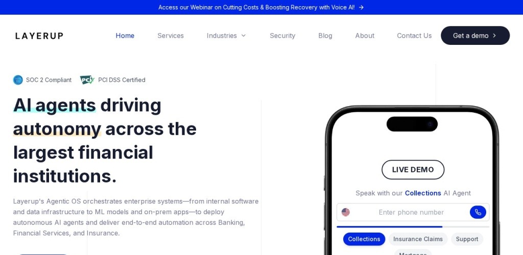 Layerup为金融机构提供定制化的AI代理,以提升客户体验,满足业务需求。这些AI代理在多个领域发挥作用,包括:
