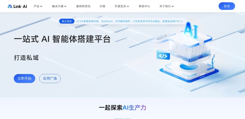 LinkAI是一站式AI智能体搭建平台,聚合文本、语音、图像等多模态模型,提供知识库RAG、插件、工作流Agent等增强能力,并支持零代码接入企业微信、公众号、微信客服、钉钉、飞书等多种应用渠道,助力个人和企业完成AI大模型的行业落地。