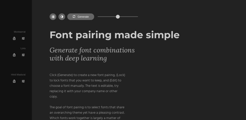 - 神经网络生成字体搭配:Fontjoy 使用深度学习算法,根据用户选择的字体特征,自动生成协调的字体搭配建议。