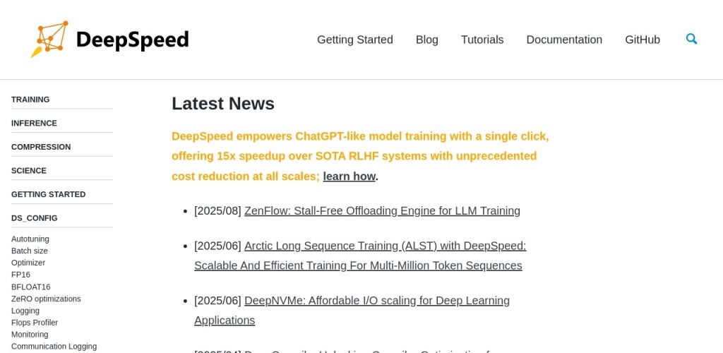 - 大规模训练和推理:DeepSpeed 支持训练和推理具有数十亿甚至数万亿参数的密集或稀疏模型,能够高效扩展至数千个 GPU。