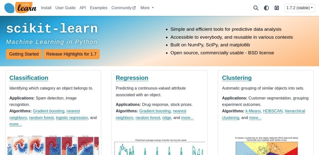 - 开源免费:Scikit-learn 是一个开源项目,可以免费使用和修改。
