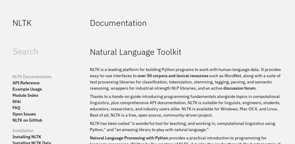 NLTK适用于语言学家、工程师、学生、教育工作者、研究人员和行业用户。它支持Windows、Mac OS X和Linux操作系统,并且是一个免费的、开源的、社区驱动的项目。