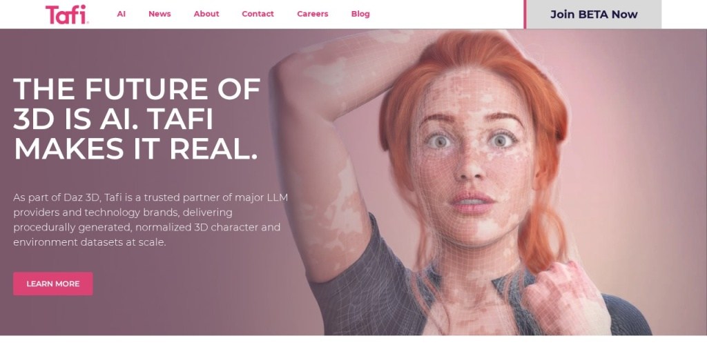 网站主要介绍了两个公司:Daz 3D 和 Tafi。