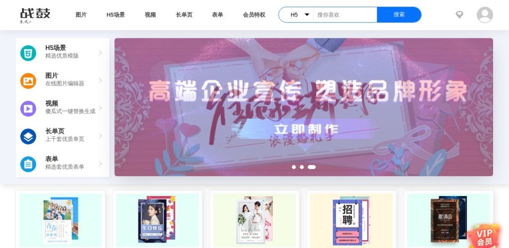 战鼓网简单高效强大的H5页面、微信海报制作平台。海量h5模板、海报随心挑选,微信营销推广场景制作平台,企业宣传、音乐相册、电子贺卡、邀请函、微杂志等一键生成H5页面。