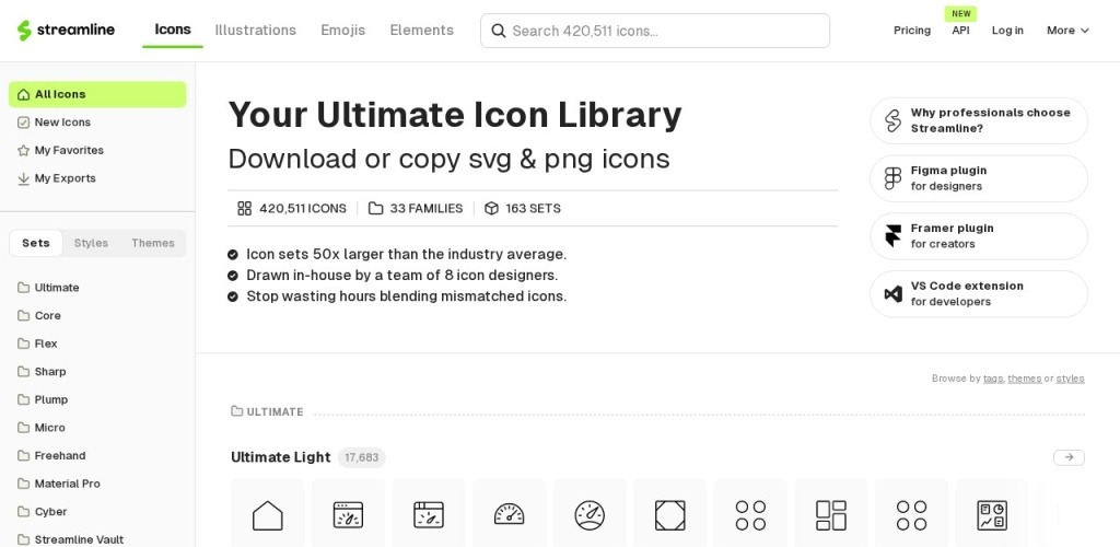 - Streamline 的图标集规模是行业平均水平的 50 倍,确保用户能找到所需的各种图标。