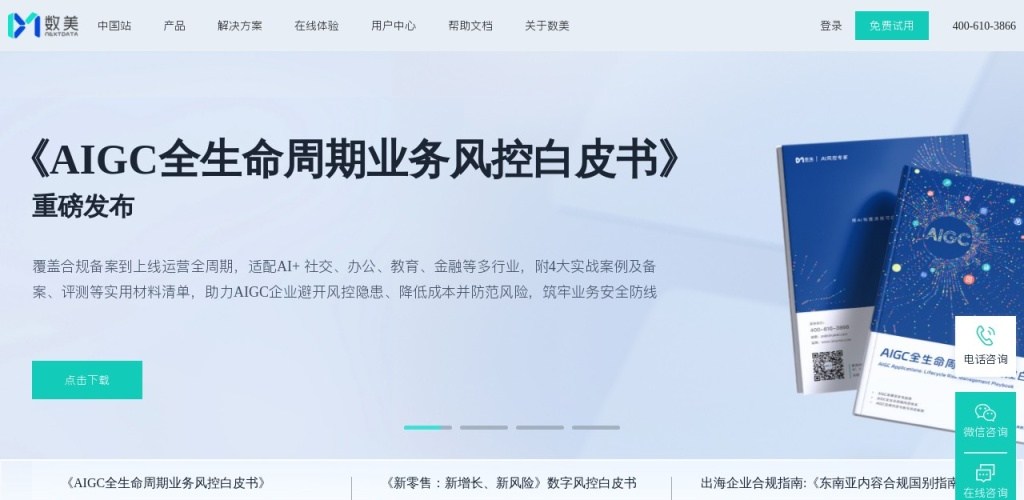 AI技术驱动:数美科技采用最新的AI技术,构建了秒级迭代的全球SaaS AI风控服务网络,提高了风控效率和准确性。