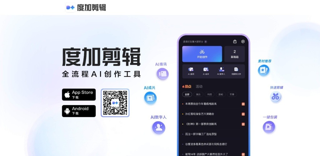 智能剪辑:度加剪辑能够根据用户的需求和素材特点,自动推荐最合适的剪辑方案,帮助用户快速完成视频剪辑工作。