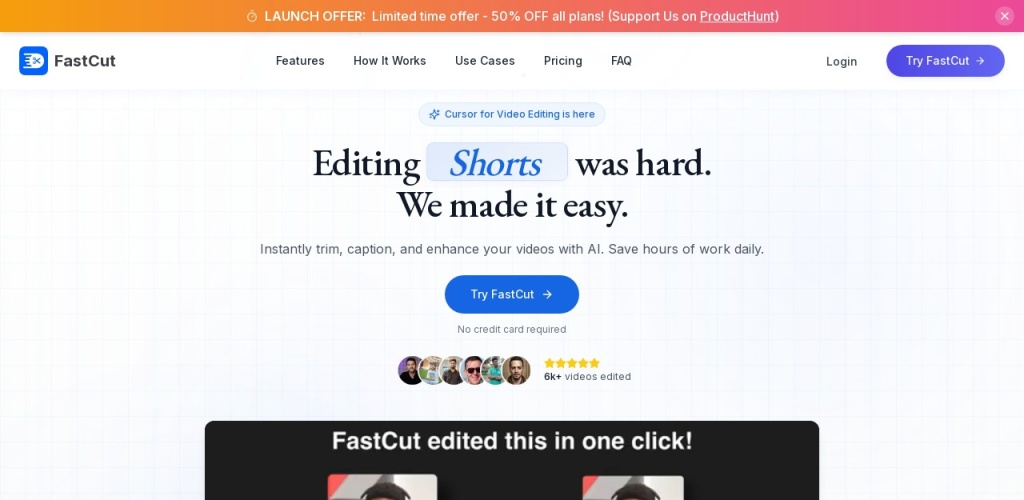 FastCut是一款基于人工智能技术的视频制作平台,它通过智能分析用户上传的图片、文字等信息,自动匹配流行的视频模板和音乐,从而实现一键生成视频短片的功能。同时,它还支持自动添加字幕、关键词高亮、表情符号等个性化功能,让用户的视频更具吸引力。
