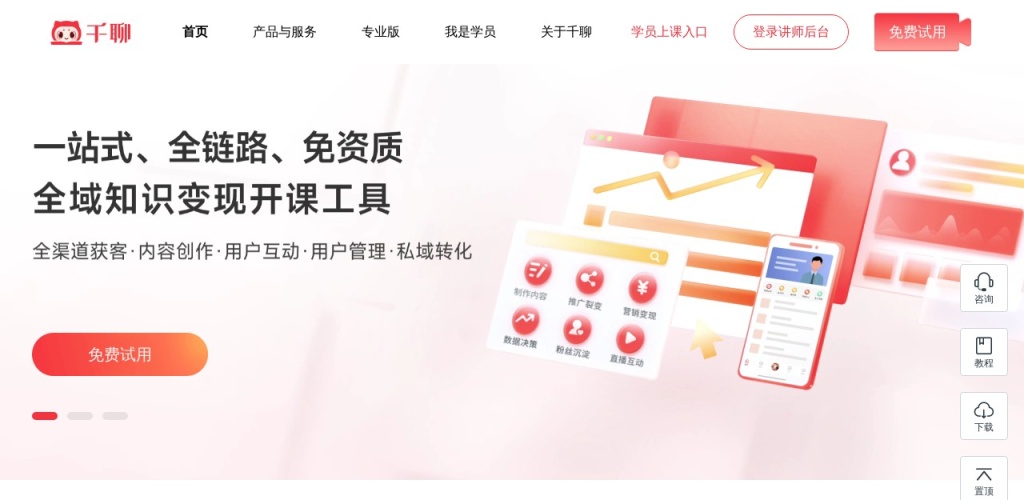 全免费:千聊提供了一站式全免费的服务,用户无需支付任何费用即可使用平台上的各项功能,降低了知识变现的门槛。