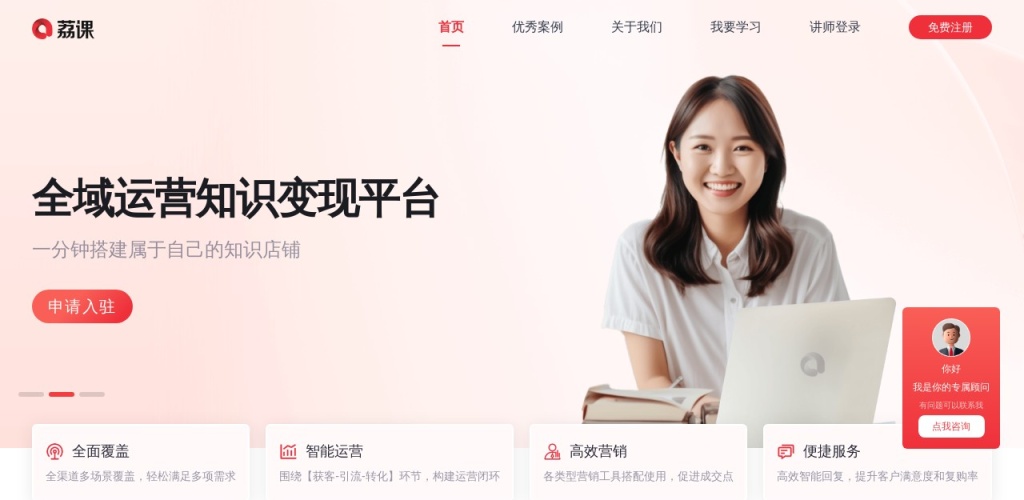 全渠道经营场景覆盖:荔枝微课支持多种渠道引流获客,包括微信公众号、小程序、APP等,帮助用户占据公域流量入口,实现知识变现的快速高效。