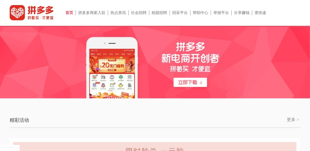拼多多作为新电商开创者,致力于将娱乐社交的元素融入电商运营中,通过“社交+电商”的模式,让更多的用户带着乐趣分享实惠,享受全新的共享式购物体验。