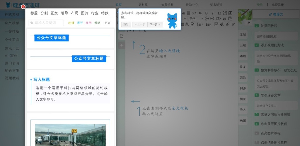 一站式解决方案:键盘喵微信编辑器集成了素材库、样式模板、数据分析等多种实用工具,为用户提供一站式服务。