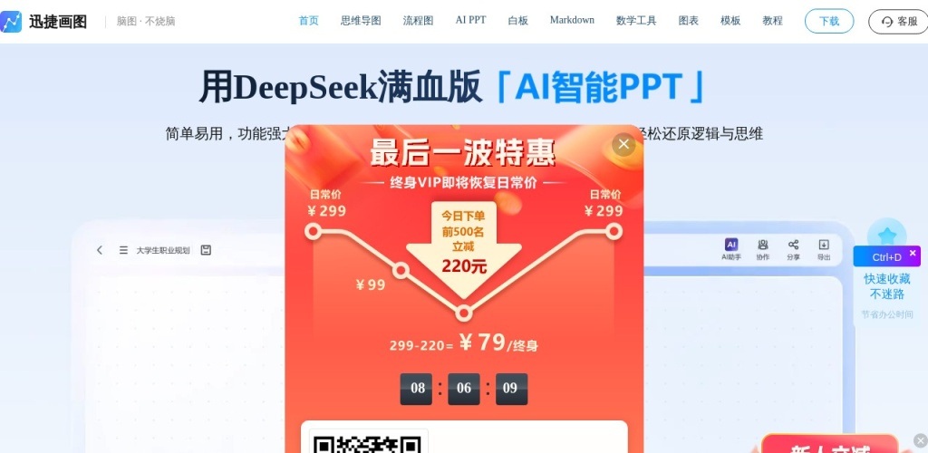 迅捷画图是一个专业的在线画图网站,为用户提供简单易用的作图工具,支持在线创作流程图、在线制作思维导图、组织结构图、ER图、网络拓扑图等.在线作图,方便快捷,真正实现高效工作。