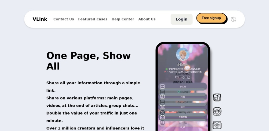 vlink,唯一链接,唯链,唯链接,数字名片,linktree中国版,link in bio,linktree