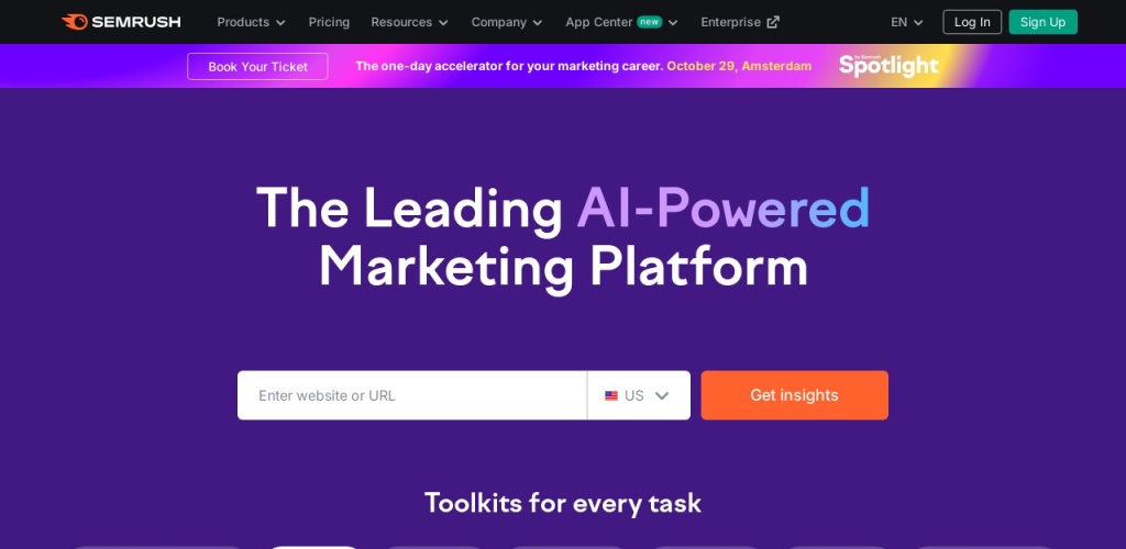 Semrush 的市场研究工具通过分析大量的数据,提供市场趋势、消费者行为、竞争对手情况等方面的洞察,帮助用户做出更明智的营销决策。