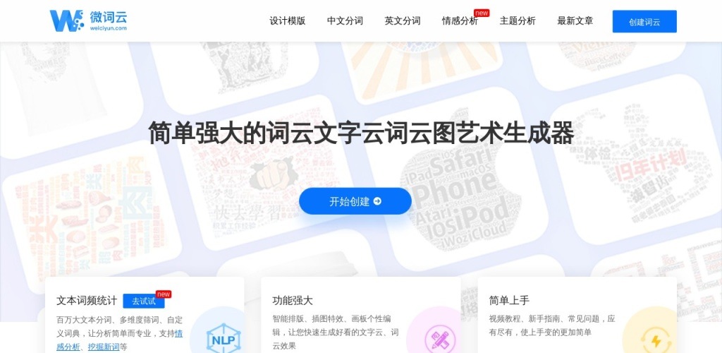 微词云是一款实用性强、简单的在线文字云、在线词云图生成器,相对于其他产品,我们的产品功能更加强大,不仅支持在线分词,还支持词频统计、词频分析。无论您是设计、运营、学生老师、数据分析师,都可以简单的做出令人眼前一亮的文字云设计。