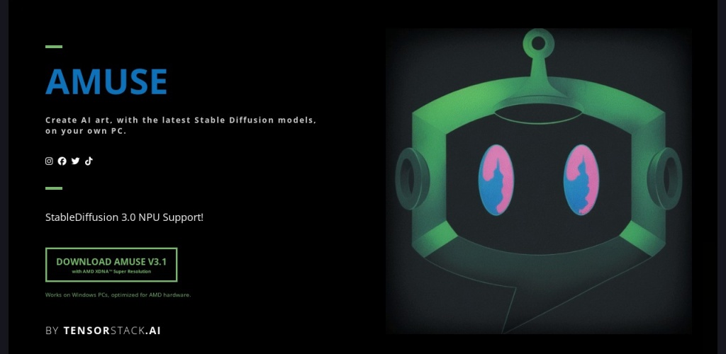 Amuse 2.0 Beta是一款由AMD推出的桌面客户端软件,专为AMD Ryzen™ AI 300系列处理器和Radeon™ RX 7000系列显卡用户设计。这款软件主要提供AI图像生成和优化体验,结合了Stable Diffusion模型和AMD XDNA™超级分辨率技术,使得用户可以轻松地生成和优化图像,无需专业的编程知识。Amuse 2.0 Beta适合希望利用AI技术进行图像创作的设计师、内容创作者以及对AI艺术感兴趣的普通用户。