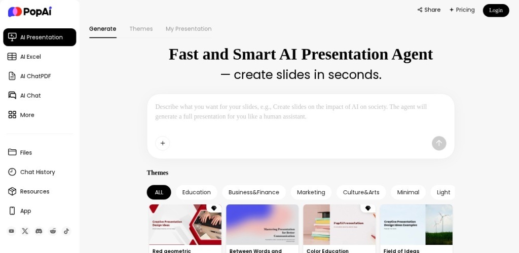 PopAi是一款基于先进AI技术的助手服务产品,它集成了强大的GPT-3.5模型,为用户提供高效、便捷的聊天、文档创建和创意生成功能。PopAi致力于提升用户的工作效率和激发创意灵感,成为用户在工作和生活中的得力助手。