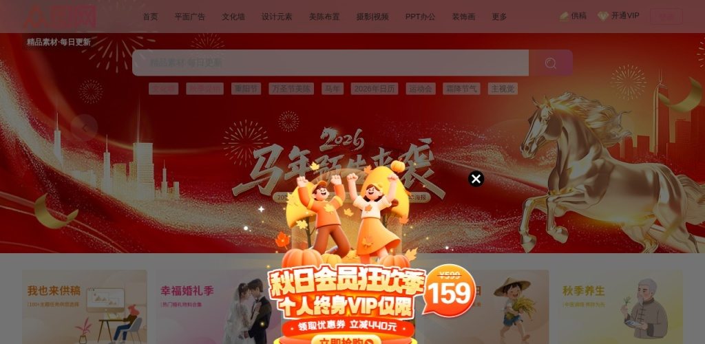 服务内容:平台涵盖平面设计、文化墙、房产地产、美容医美等多个行业,提供多样化的设计素材。