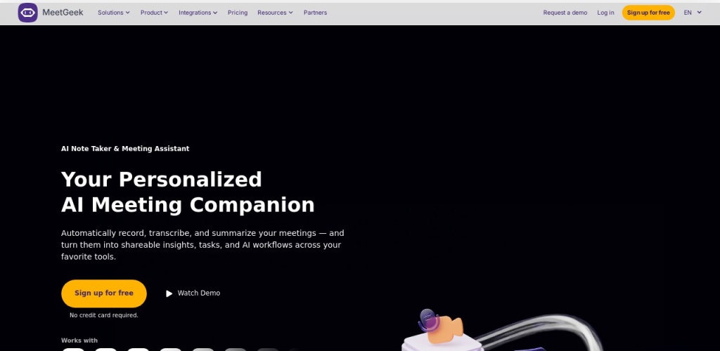 MeetGeek,一个AI驱动的会议记录和助手工具,旨在提高客户沟通效率和会议生产力。