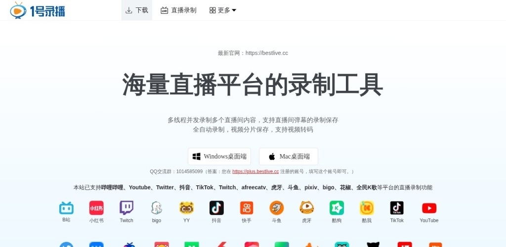 1号录播是一款支持B站哔哩哔哩、抖音快手、虎牙斗鱼、YY、油管YouTube、Twitch、bigo等国内外各种直播平台的录制工具,使用简单,功能强大,支持自动录制,支持并发录制多个直播间,帮助您捕捉精彩的直播内容。一款免费的直播录制工具,支持多种主流直播平台,并具备嗅探功能以应对小众直播网站。