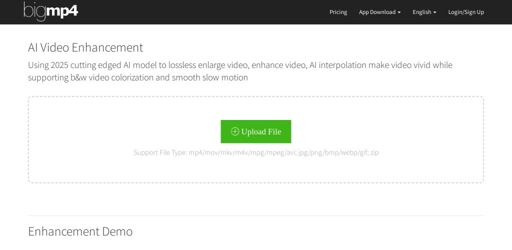 bigmp4.com – 使用 2024 切边人工智能模型无损放大视频、增强视频、人工智能插值使视频生动,同时支持黑白视频着色和流畅慢动作。