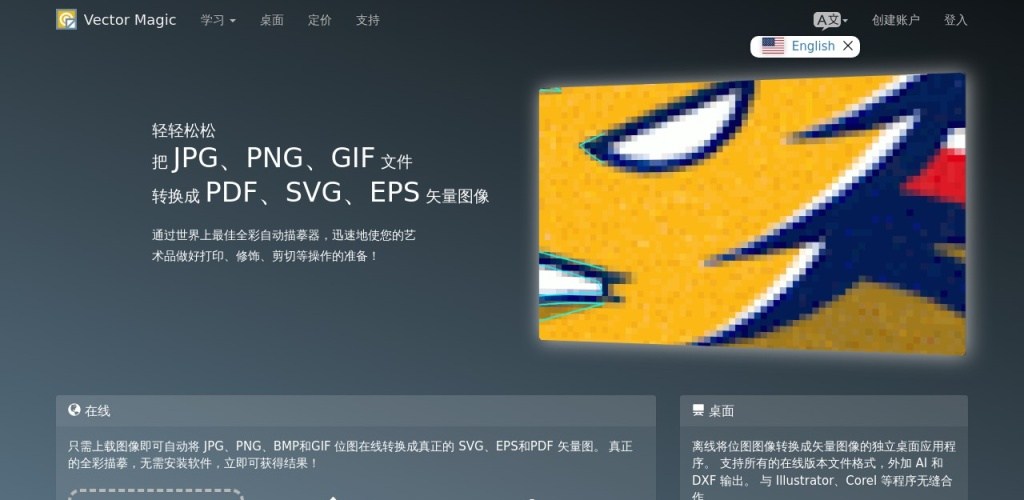 在线或使用桌面应用程序,轻松将 JPG、PNG、BMP、GIF 位图图像转换为 SVG、EPS、PDF、AI、DXF 矢量图像,并进行真正的全彩描边!