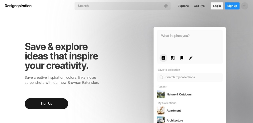 Designspiration这个网站及其浏览器扩展,旨在帮助用户保存创意灵感、颜色、链接、笔记和截图。