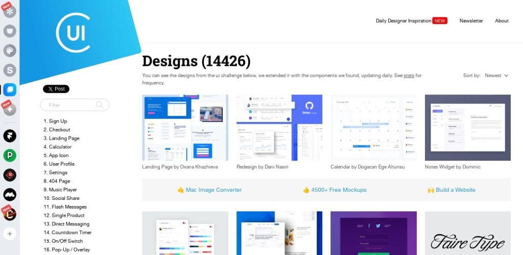 功能:提供UI设计的每日灵感,用户可以查看和收藏设计作品。